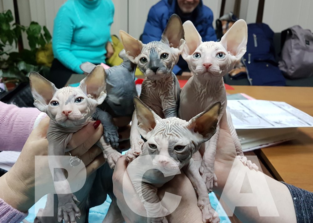 Питомник кошек PCA СКАРЛЕТ выпустил помет котят породы канадский сфинкс, в количестве пяти малышей. Две кошки черепахового окраса, кошка окраса голубокремовый с белым , кошка окраса голубокремовый с белыми отметинами, кот кремового окраса. Все котята голорожденные, прекрасно выращены, обладают ярко выраженными породными данными, перспективны в селекционной работе.